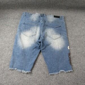 Smoke Rise Shorts Mens 40 Blue Distressed Patchwork Paint Splatter Denim Frayed