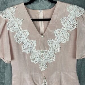 SCOTT McCLINTOCK midi dress 10 tag Pink Pearl Buttons lace cocktail tea wedding
