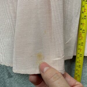 Flaws- small spot on back bottom hem, see photo, clean and ready to wear.