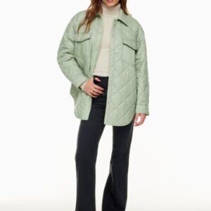 The perfect transitional layer! This gorgeous quilted shacket from Wilfred Free (Aritzia) is that effortlessly cool piece you'll reach for constantly. Fits big. Sage green colour.
