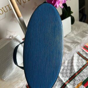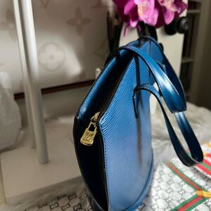 This elegant blue tote bag from a renowned designer brand is perfect for any occasion. Its sleek design and vibrant color make it a standout accessory.