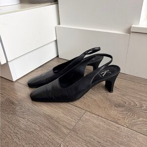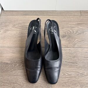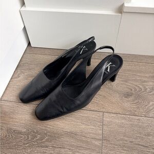 CK Calvin Klein Leather Square Toe Slingback Heels