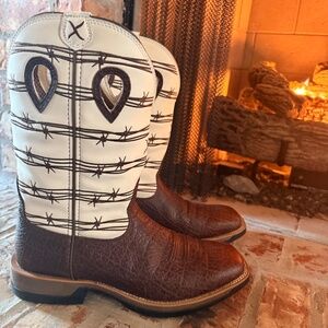 Hi, these are a pair of men’s twisted X cowboy boots size 10 D. My son probably wore these two times until he broke his growth plate asking $125