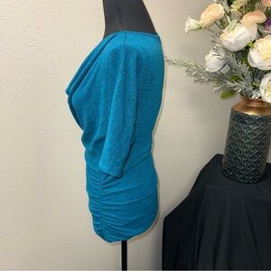 HeartSoul Teal Draped Cowl Neck Ruched Stretch Top Short Sleeve