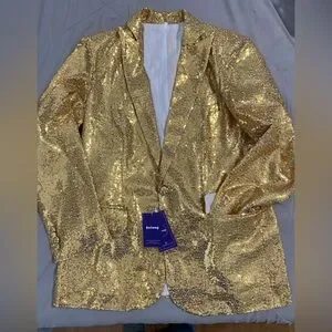 Gold Sequined Women's Pantsuit Jacket Pants Size Large NWT Fully Lined