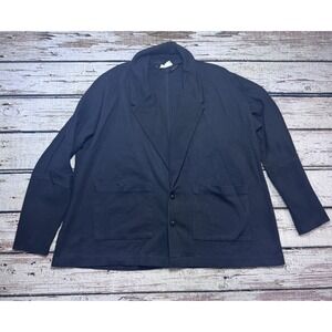 Pact Women's Large Black Organic Cotton Relaxed Blazer Minimalist Contemporary