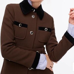 J. Crew Black Velvet Trimmed Lady Day Coat in Italian Wool. Espresso RARE!