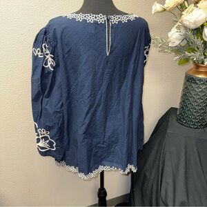Cato Navy Boho Embroidered Floral Peasant Blouse Plus 26/28W