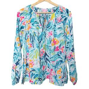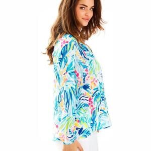 Lilly Pulitzer Willa Tunic Blouse Top in Serene Blue Tippy Top Size S