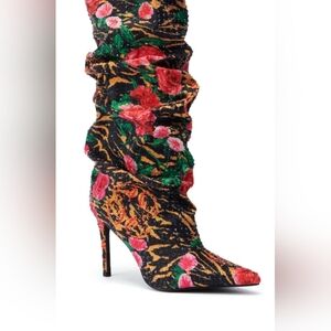 AZALEA WANG "FORBIDDEN GARDEN" Vibrant Floral Heeled Boots