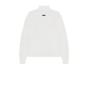 Introducing the Eternel Turtleneck from the exclusive Fear Of God Essentials collection, which epitomizes elegance and modernity. This cream sweater, made from high-quality materials, offers a classic, loose fit with long sleeves. The turtleneck collar gently hugs the neck, adding a sophisticated touch.