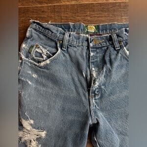 Vintage Cabela's Distressed Flannel Lined Blue Straight Jeans Men’s Cut