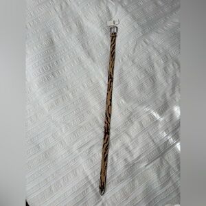 Anthropologie belt with a tan and brown fur pattern with a silver buckle. Size XS