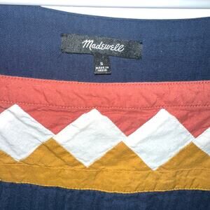 Madewell Patchwork Shift Mini Dress Blue Cotton Short Sleeve Boho size S