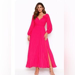 🔥 VINTAGE ICONIC Hollywood WILLIAM TRAVILLA fuchsia long sleeve chiffon gown sz8