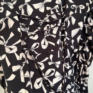For Love & Lemons Angelica Bow Print Puff Ruched Sleeve Button Front Dress sz M