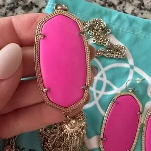 Kendra Scott Pink and Gold Rayne Necklace and Danielle earring set