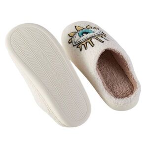 Evil Eye, Blue Eyes Ivory Cozy Soft Fleece Indoor Slippers LARGE 10-11 (42-43)