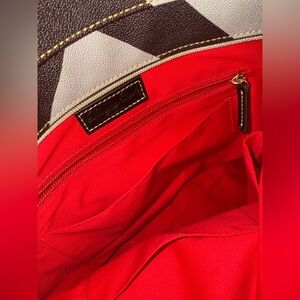 Dooney & Bourke, Y2K, Coach, Gucci, Louis Vuitton, Vintage Beige Monogram, Leather Trim, Compact, Logo Pattern, Wrist Strap, Classic Design, Signature Print, Minimalist, Heritage, Preppy