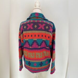 A beautiful piece for fans of vintage knits, boho style, or colorful cold-weather layers.
