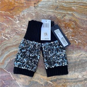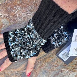 Brand new from Bloomingdale’s fingerless gloves with sequin bling! Warm sweater material!