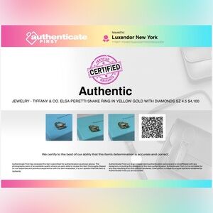 Authentic Tiffany & Co. Elsa Peretti Snake Ring in Yellow Gold with Diamonds sz 4.5 US