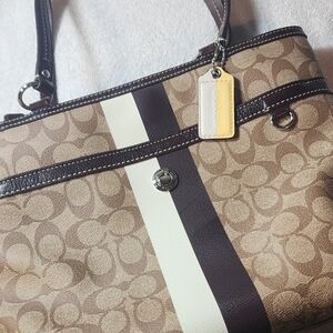 Coach Chelsea Heritage Stripe F14477 Signature Shoulder Handbag EUC
