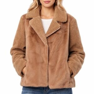 French Connection NWT Camel Faux Fur Teddy Mixed Media Short Jacket Coat Size XL