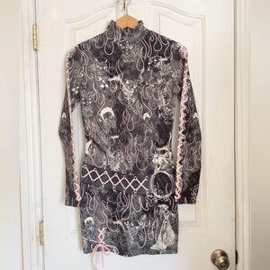 Desegual Maria Escote Y2K Punk Bow Detail Kawaia Mini Slim Dress size S