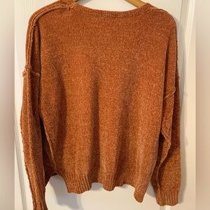 Cozy and stylish inside-out design, V-neck sweater. Perfect for cool weather. Easy to pair with jeans or skirts.