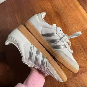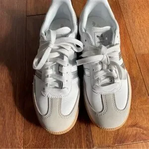 Adidas Samba OG Shoes White Silver Gray Lace Up Sneaker Rubber Sole Womens
