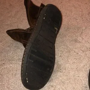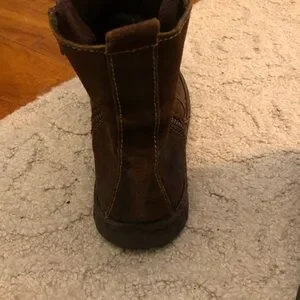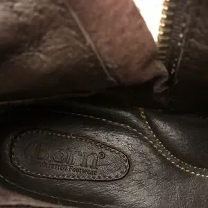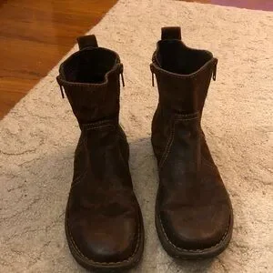 Stylish brown leather ankle boots by Born. Features a rugged design with side zippers. Perfect for casual wear. Very good condition!