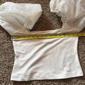 Alice + Olivia Eliana Puff-Sleeve Crop Top medium party white coquette feminine