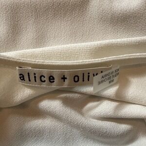 The Alice + Olivia Eliana Puff-Sleeve Crop Top in medium size is a feminine and coquette white blouse perfect for a party or special occasion. With its puff sleeves and cropped fit, this top exudes a designer and bohemian vibe, making it a stylish addition to any wardrobe. Its square neckline and lightweight fabric add a touch of elegance and versatility to this chic piece. Ideal for women who love to make a statement with their fashion choices.