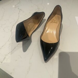 Chic black heels with signature red soles. Iconic design for a bold look.