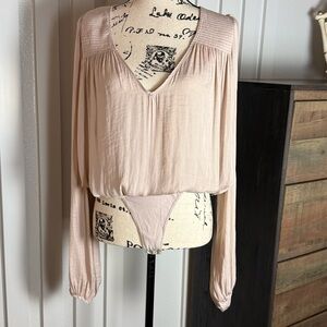 Intimately Free People Blush Pink Long Sleeve Bodysuit Boho Smocked Medium