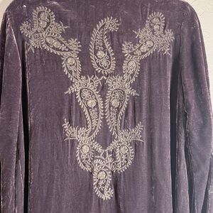Chan Luu crushed velvet embroidered kimono cardigan shawl sweater duster