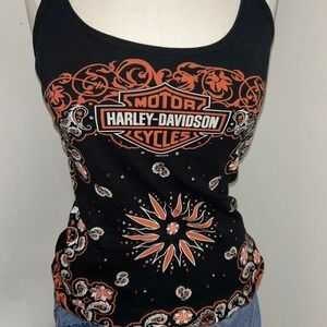 Harley-Davidson Women's Black Tank Top Bandana Paisley Bling Y2K Biker