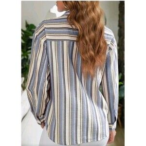 EVALESS Sky Blue Striped Button-Down Blouse