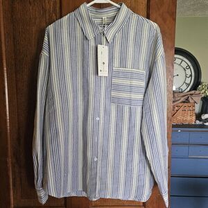 Details: Long sleeve, button-down front, relaxed fit
