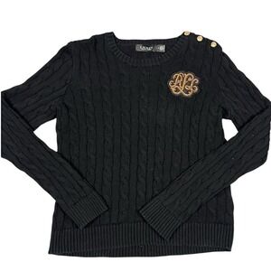 Lauren Ralph Lauren Black Label Cable Knit Black Sweater Bullion Patch Medium