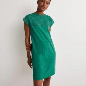 Boden Women's Emerald Green Cotton Cutwork T Shirt Dress