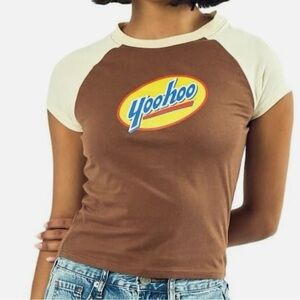 Yoo-Hoo Logo Women's Brown Crew Neck Short Sleeve Baby Raglan Tee XXL NWT