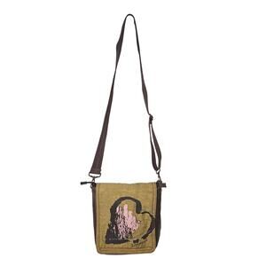 Life is Good Nylon Adjustable Strap Crossbody Bag Purse Brown Tan Heart Boho