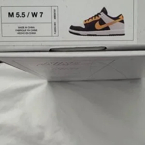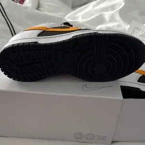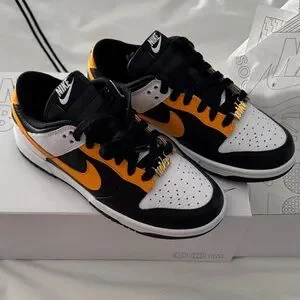 Custom Nike “dunks low” in yellow, black and white with added gold/rhinestone shoelace charm on each show. Brand new, never worn! Ships in original box!
