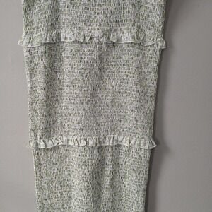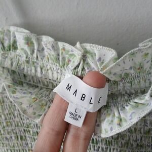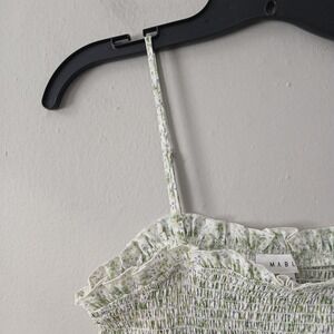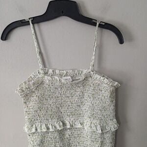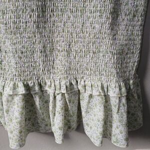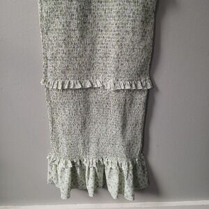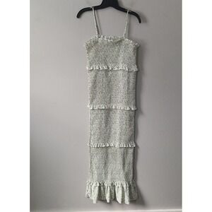 Mable Women's Size Large Smocked Long Ruffle Sleeveless Dress Green Floral Midi