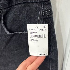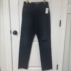 *NEW* GOOD AMERICAN GOOD BOY DISTRESSED BLACK WASH SIDE SLIT JEAN 2/26