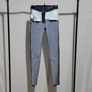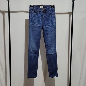J. Crew Lookout high rise skinny jeans. Distressed medium wash. Belt loops. Button and zipper. Marked a size 25. 43% viscose, 33% cotton, 17% lyocell, 5% polyester, and 2% elastine. There are not any stains, tears, or holes. Very good, gently used condition.