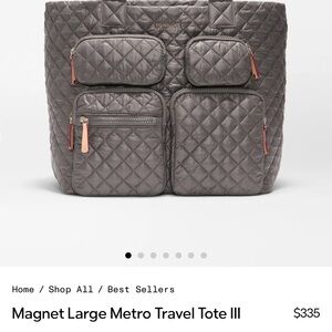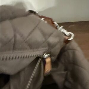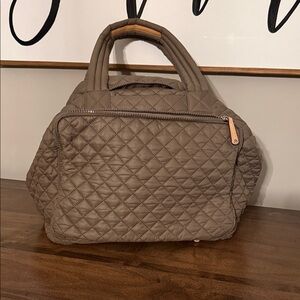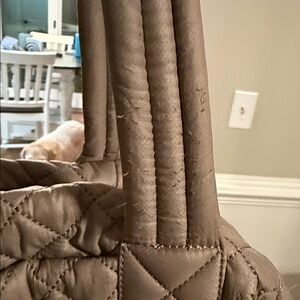 Chic quilted design with spacious compartments. Ideal for travel, fits under airplane seat perfectly. Used for one trip and has some pilling on handles that could be fixed, priced accordingly. Tons of pockets and space for organization.