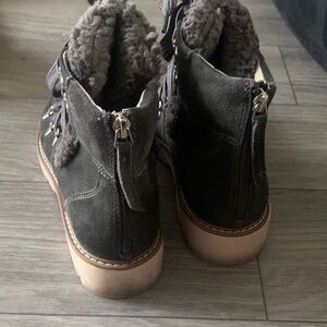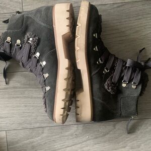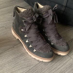 Dolce Vita Gray Shearling Lace-Up Boots